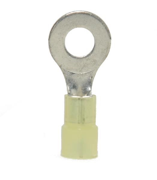 Ring Terminal, Nylon Insulated, Yellow, 12-10 Wire Size, 1/4" Stud Size