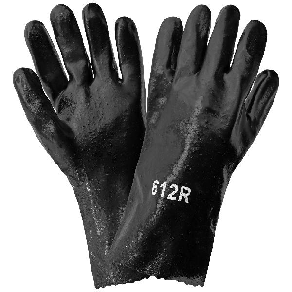 Economy Black PVC Chemical Handling Gloves Semi-Rough Grip, Gauntlet Cuff, 12" Length