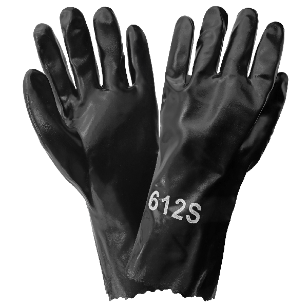 Economy Black PVC Chemical Handling Gloves Smooth Finish, Gauntlet Cuff, 12" Length
