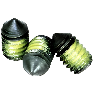Cone Point Socket Set Screws with Nylon Patch, Thermal Black Oxide are engineered for secure, vibration-resistant fastening in high-performance applications. The cone point design bites into the mating surface for maximum holding power, while the pre-applied nylon patch adds prevailing torque to resist loosening under vibration and dynamic loads. The thermal black oxide finish enhances wear resistance and provides mild corrosion protection.