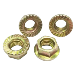 The serrated flange incorporates radial teeth that bite into the mating surface during installation, creating resistance to loosening caused by vibration and movement. This integrated locking feature eliminates the need for a separate washer while improving joint stability. The Zinc‑Yellow CR+6 (hexavalent chromium) plating offers enhanced corrosion protection and a distinctive yellow appearance, making these nuts suitable for indoor and light‑to‑moderate outdoor environments.