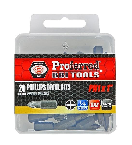 Phillips Drive Bit Set PH1 to PH3, 20 Pieces with Case