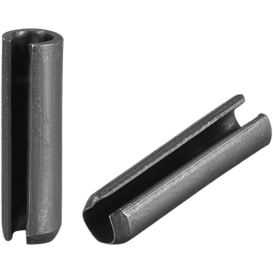 The slotted (tension pin) design allows the pin to compress during installation and then expand inside the mating hole, creating a strong interference fit without the need for additional fasteners. The plain, uncoated finish maintains precise dimensional accuracy and direct metal‑to‑metal contact, making these pins well‑suited for controlled environments or applications where coatings are not required.