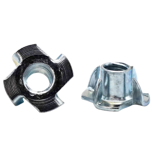 The tee nut design features a threaded barrel with a wide flange and multiple prongs that embed into the base material during installation. Once seated, the prongs help prevent rotation and pull‑out, allowing bolts or machine screws to be installed and removed repeatedly without damaging the host material. The Zinc CR+3 coating enhances rust resistance while meeting modern environmental compliance standards.